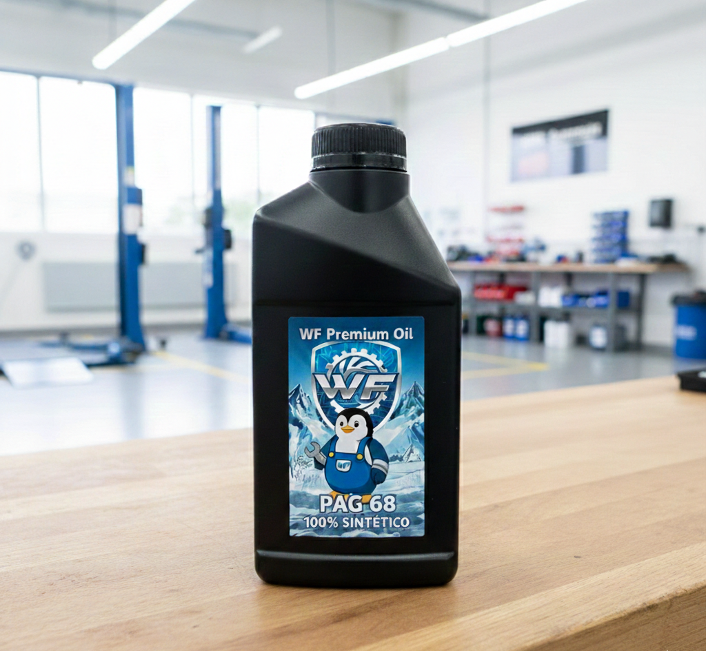 PAG 68 WF Premium - Projetado para oferecer uma camada extra de segurança, o PAG 68 WF Premium é ideal para sistemas que operam em regimes intermediários de carga. Sua fórmula garante que o óleo mantenha suas propriedades lubrificantes mesmo sob altas temperaturas de condensação. Viscosidade: ISO VG 68. Diferencial: Excelente capacidade de dissipação de calor e proteção reforçada para o conjunto rotativo. Aplicação: Veículos comerciais e sistemas que especificam viscosidade média para maior durabilidade.